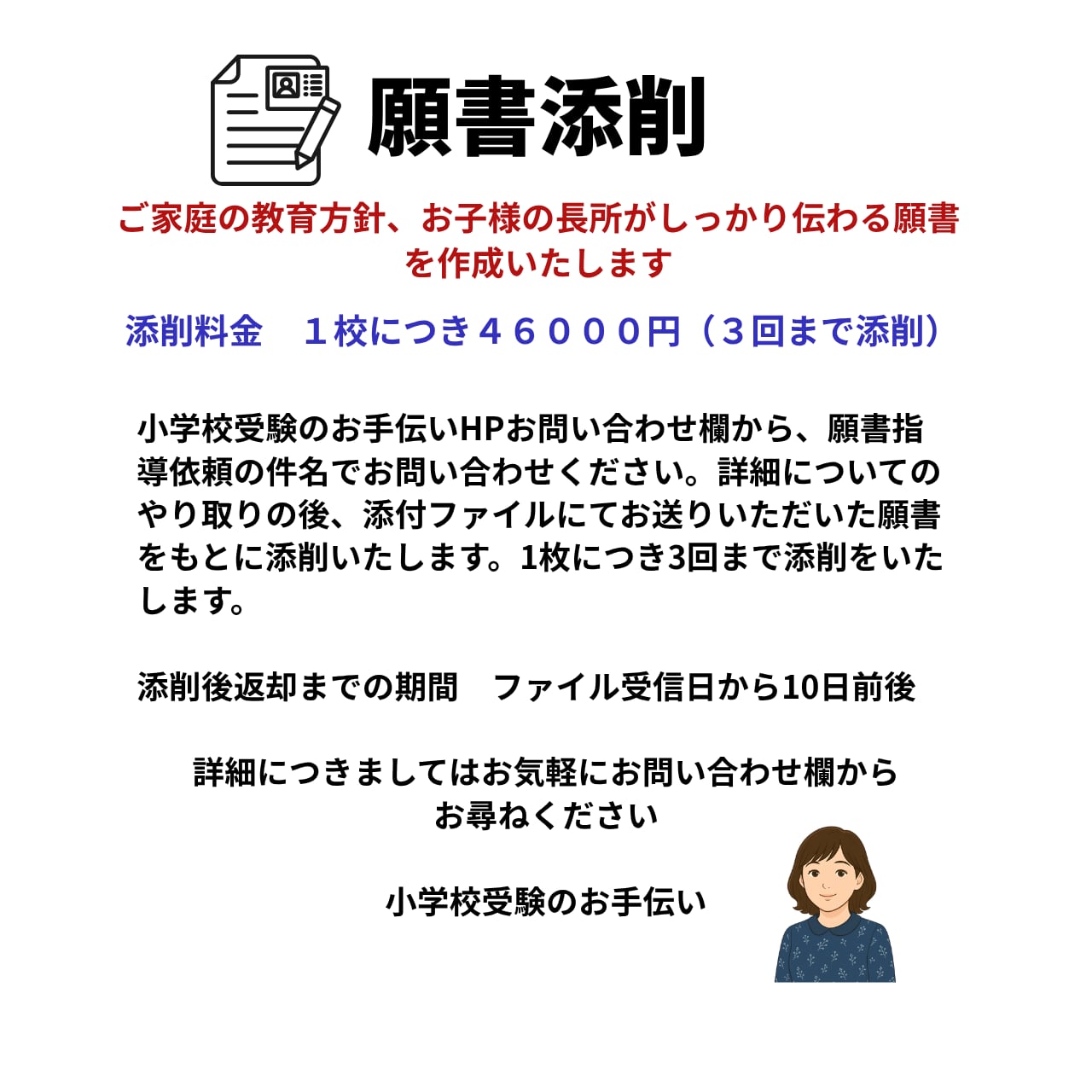 ご家庭の教育方針 お子さまの長所がしっかり志望校へ伝わる 願書添削